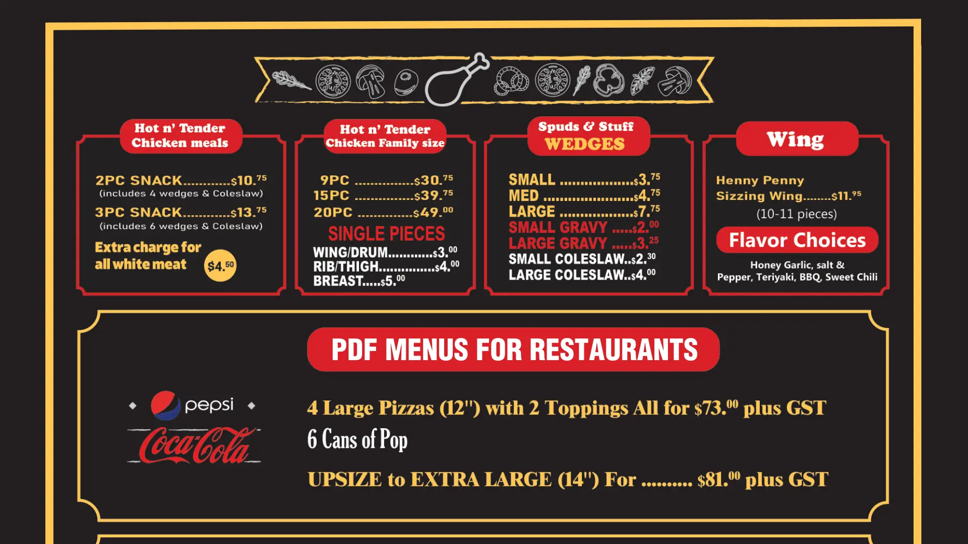 All restaurant PDF Menus come with QR codes so you don’t need to worry about reprinting the QR codes for your restaurant ever again.